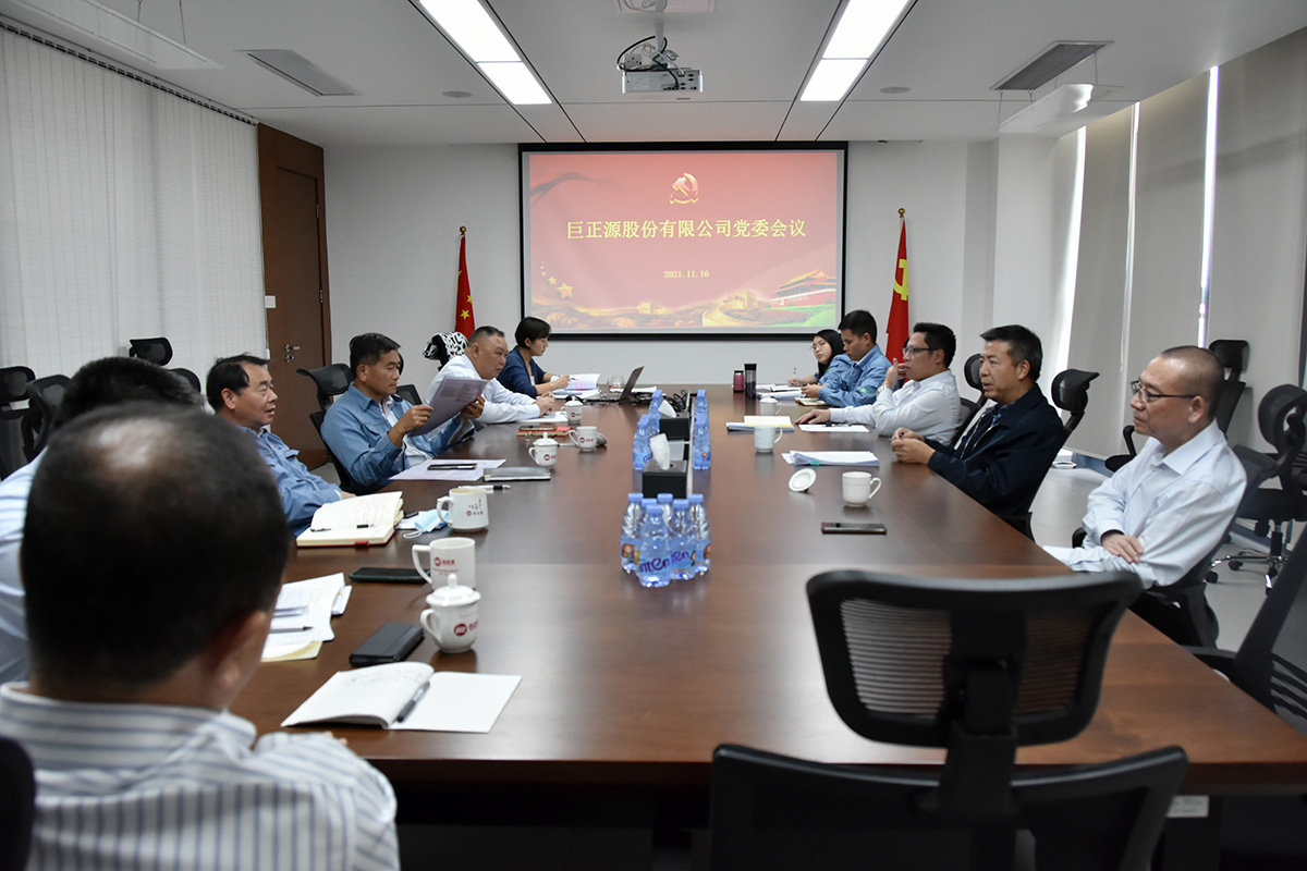 11月16日,巨正源公司召開黨委會,深入學習貫徹十九屆六中全會精神。公司黨委書記、董事長石新琦主持會議。