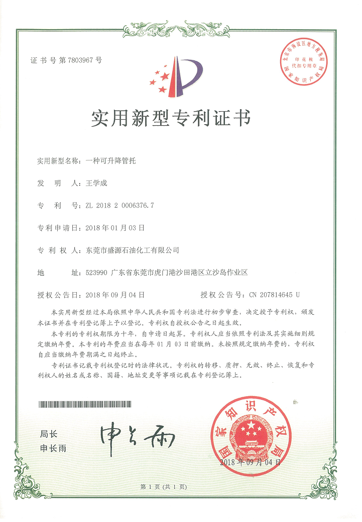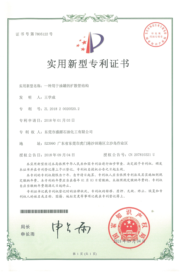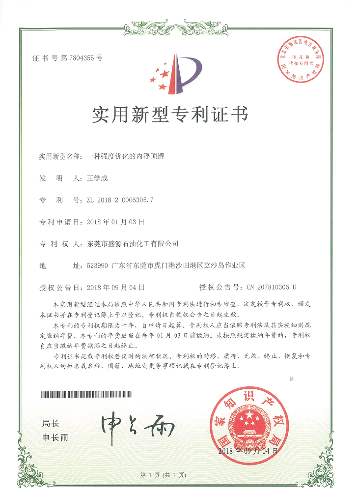 實(shí)用新型內(nèi)浮儲(chǔ)罐專利證書Click for larger image