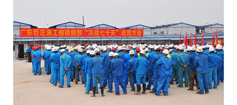 十建公司巨正源項目部項目經理林育慶作動員報告,提出了“決戰七十”勞動競賽的目標任務主要是:完成土建地坪12000平方米,道路6500米,完成鋼結構安裝共計約500噸;壓縮機安裝19臺;完成管道預制230000Din;完成電儀電纜1033千米、44千米。他表示,項目部上下緊緊圍繞投產目標,強化項目管理,確保安全、質量與進度并舉,全力打好巨正源項目沖刺攻堅戰,完成由項目施工到生產準備的實質性轉變,確保6.28開車成功。