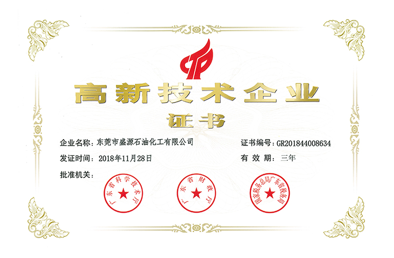 近日,巨正源所屬東莞市盛源石油化工有限公司順利通過“國家高新技術企業(yè)”認定,獲得了由廣東省科學技術廳、廣東省財政廳、國家稅務總局廣東省稅務局聯(lián)合頒發(fā)的高新技術企業(yè)證書,證書編號為GR201844008634。