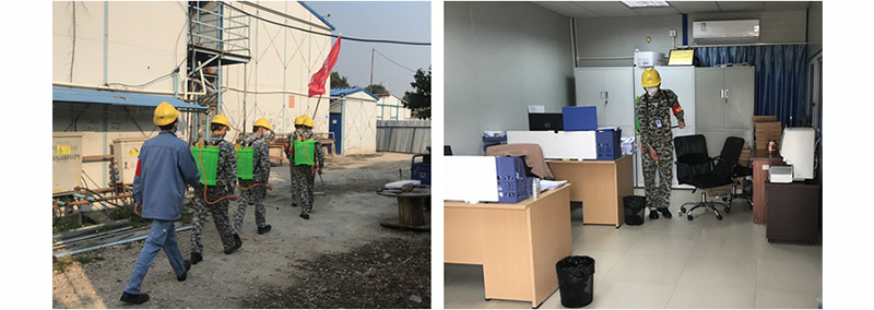 同時,巨正源科技公司青年戰(zhàn)疫突擊隊利用周末時間對中石化四建、甬港工程、中化三建及公司板房辦公區(qū)、公共區(qū)域進行大規(guī)模預防性消毒。隊員們背著消毒噴霧器,從室外到室內(nèi),從地面到扶手,不放過一處死角,不留下一處隱患,用實際行動彰顯了青年戰(zhàn)疫突擊隊的擔當和使用,以昂揚向上奮斗姿態(tài)投身到疫情防控工作中,將落實疫情防控措施到位。