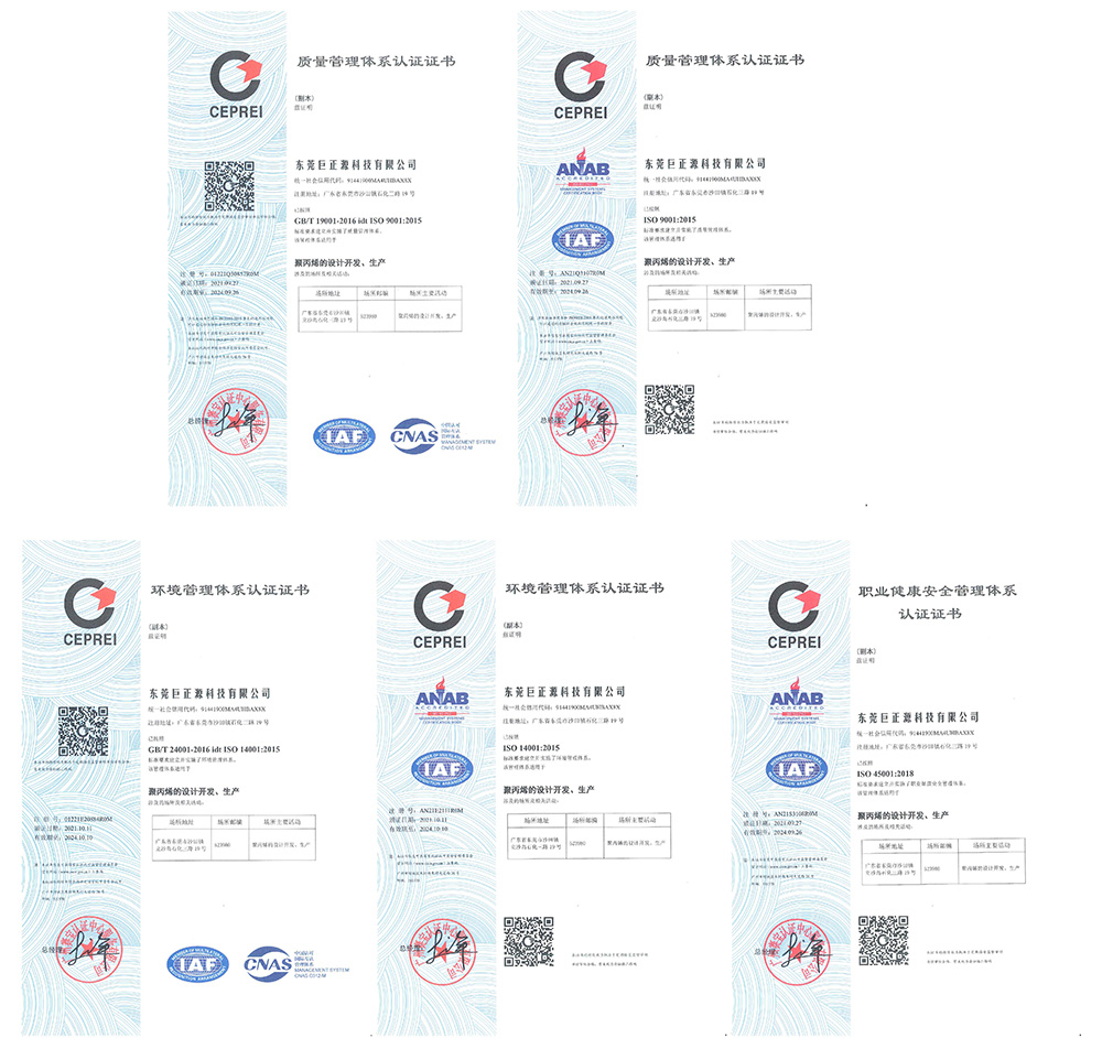 近日,巨正源科技公司成功獲得ISO9001質量管理體系、ISO14001環(huán)境管理體系及ISO45001職業(yè)健康安全管理體系的認證證書,標志著公司在“標準化、規(guī)范化、精細化”管理方面邁上新臺階,為進一步提升企業(yè)管理水平、增強企業(yè)核心競爭力奠定堅實基礎。