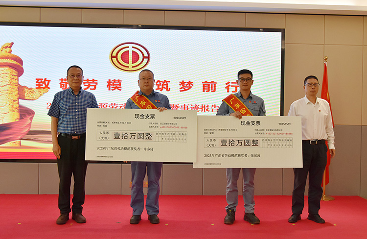 會(huì)議宣讀了對(duì)榮獲“廣東省勞動(dòng)模范”的許多琦、張東波同志的表彰決定,對(duì)他們辛勤付出和工作成效予以肯定。公司領(lǐng)導(dǎo)為許多琦、張東波同志頒發(fā)獎(jiǎng)金,并為許多琦、張東波“勞模和工匠人才創(chuàng)新工作室”揭牌。